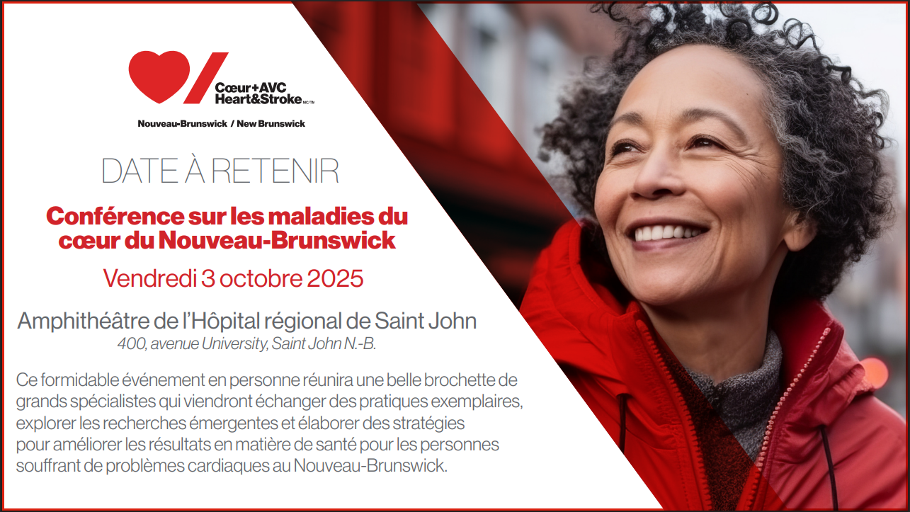View Larger Image DATE Ą RETENIR: Conférence sur les maladies du cœur du Nouveau-Brunswick sur le vendredi 3 octobre, 2025 Kristin2025-06-29T21:51:44+00:00Tags: prévention, soins de santé|