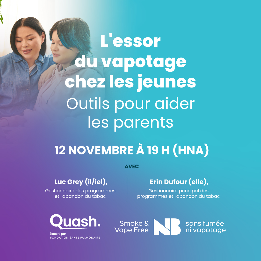 Webinaire GRATUIT pour les parents: « L’essor du vapotage chez les jeunes – Outils pour aider les parents »
